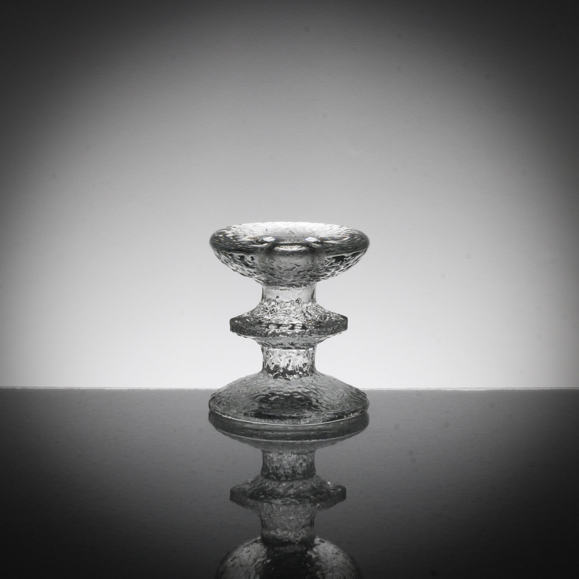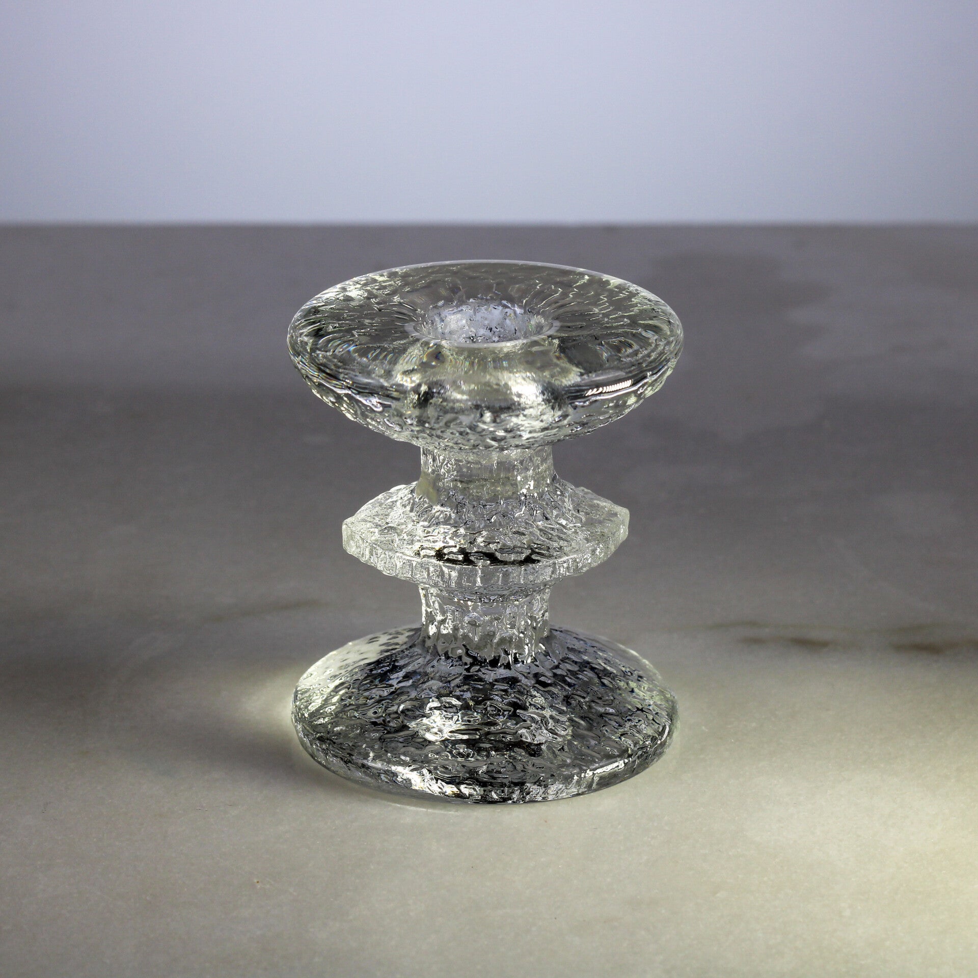 Uit de serie Festivo komt deze 1-rings kandelaar, uitgevoerd in zogenaamd "ijsglas".