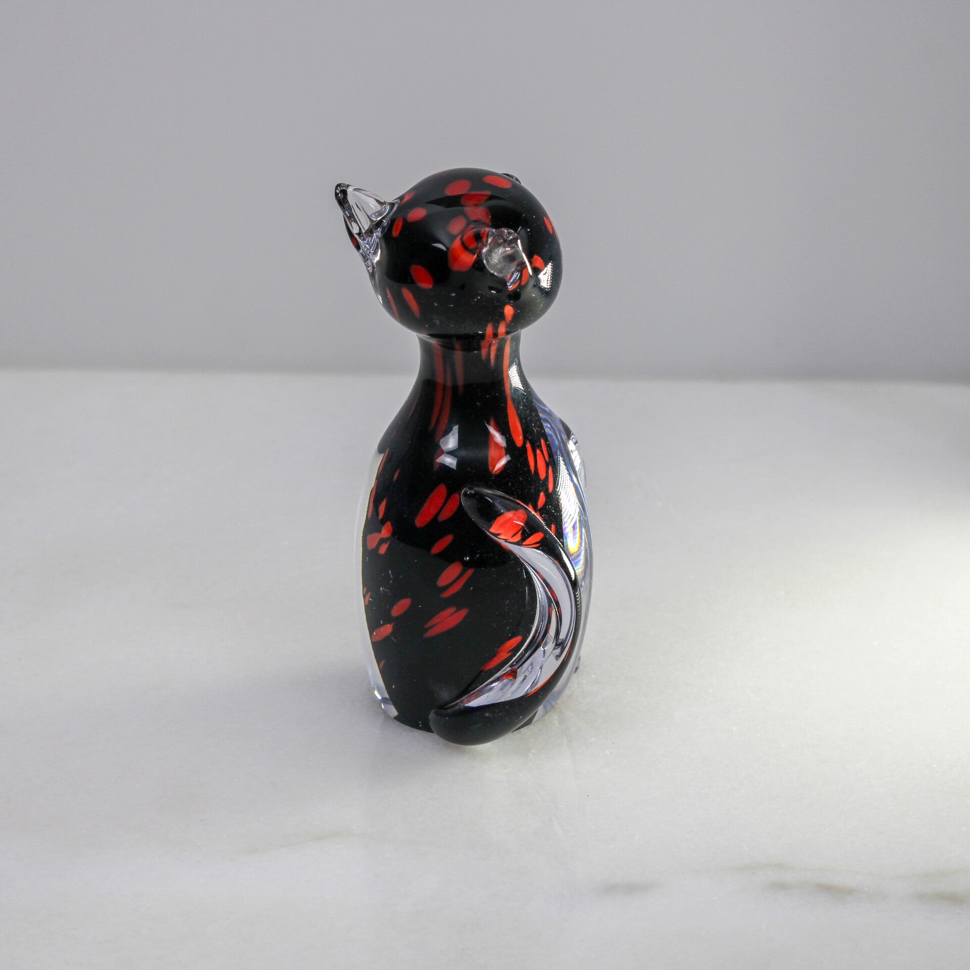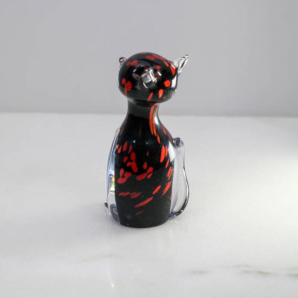 Mondgeblazen kat van Moser in blank/zwart kristalglas met rode accenten