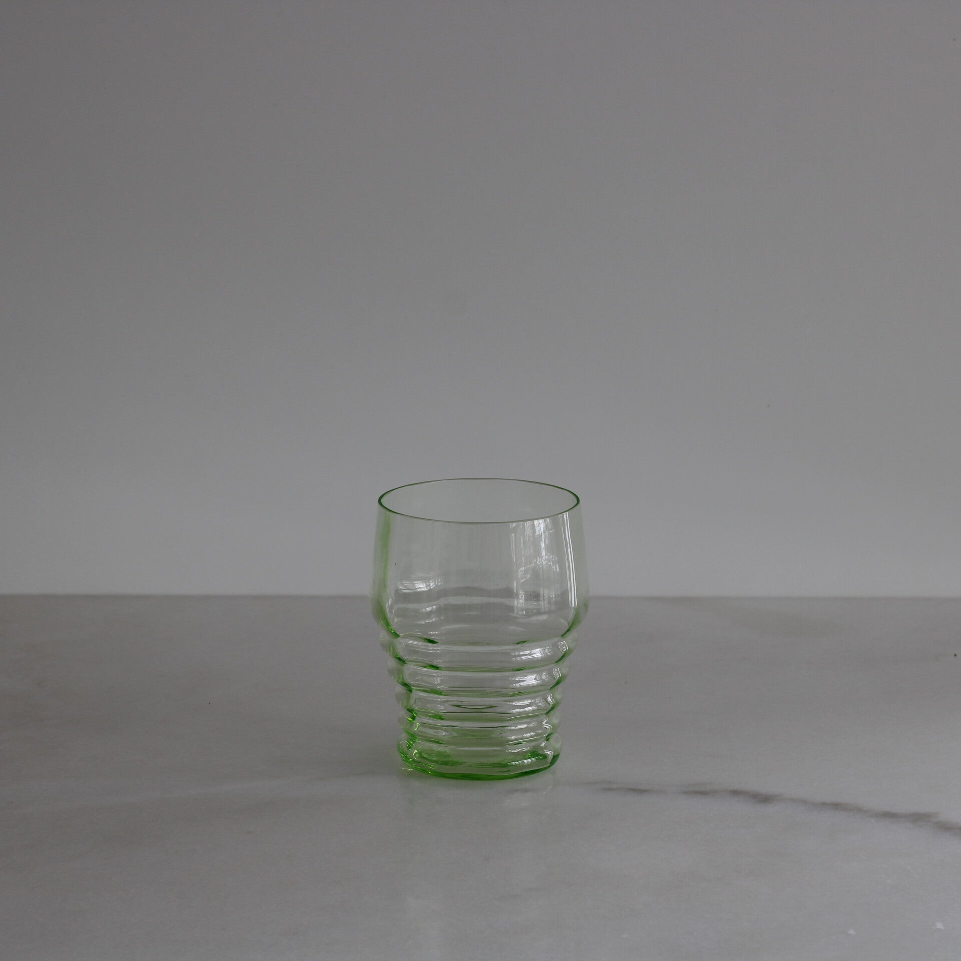 Dit is een groen, geribbeld glas, gemaakt van uraniumglas, ook wel annagroen genoemd.