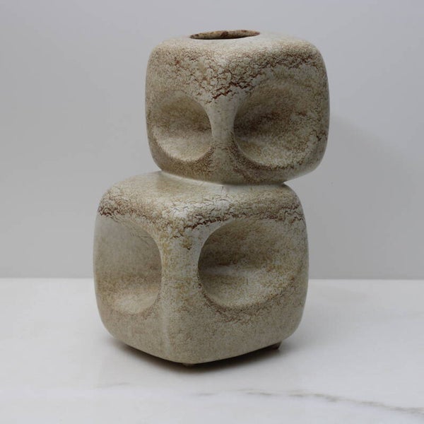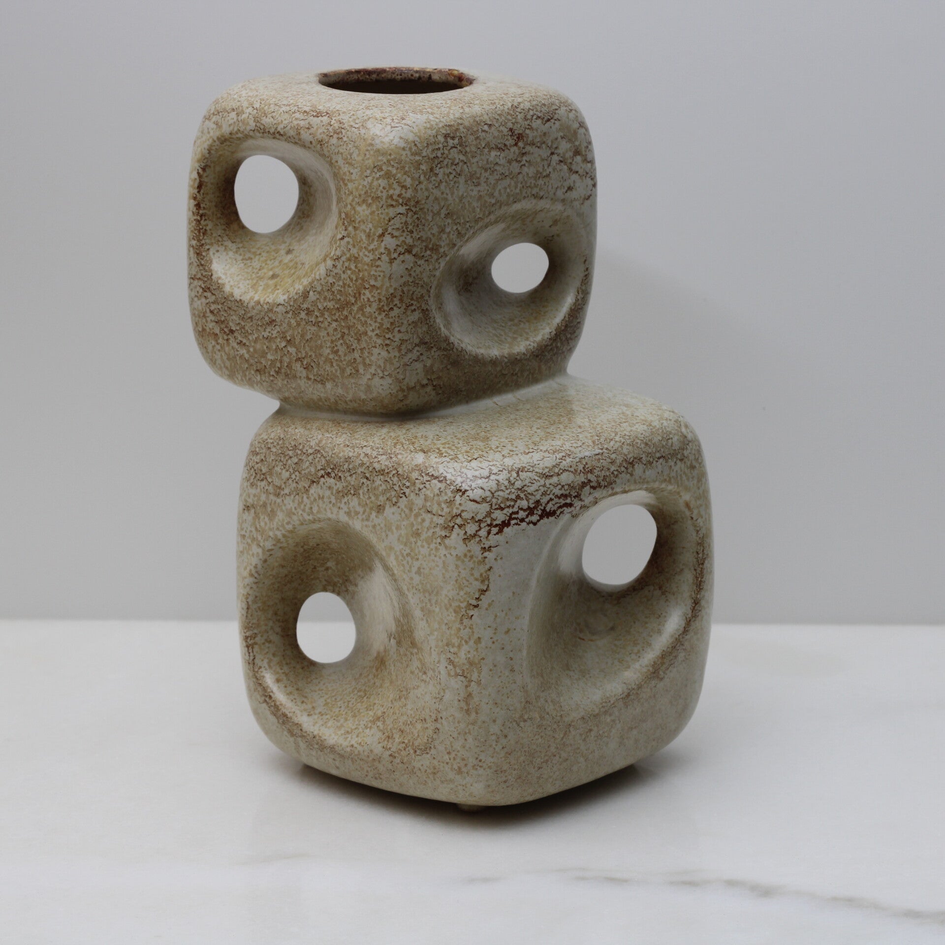 Dit is een sculpturale, dubbele kubusvormige keramieken vaas, ontworpen door Roberto Rigon voor Bertoncello Ceramiche d'Arte.