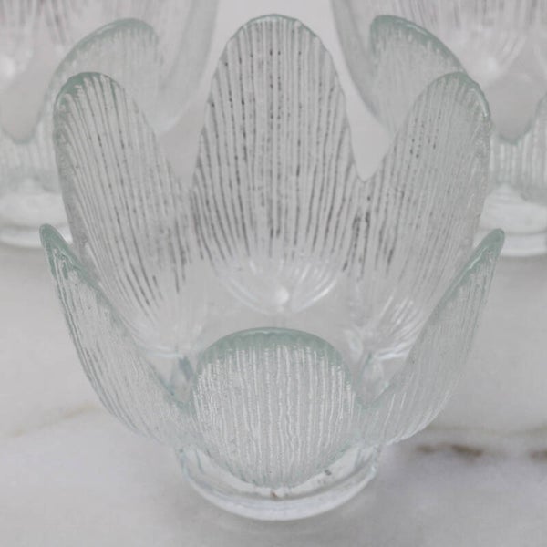 Prachtige kleine lotusvormige helder glazen votiv/ waxinelichthouders.