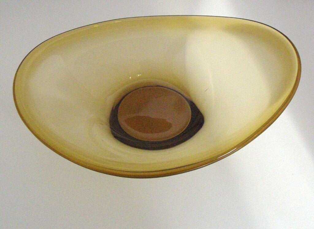 Mondgeblazen glas in amberkleur, dat donkerder wordt naar de basis toe.