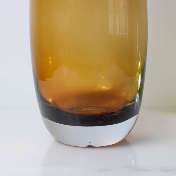 Mondgeblazen bruine vaas met blanke voet