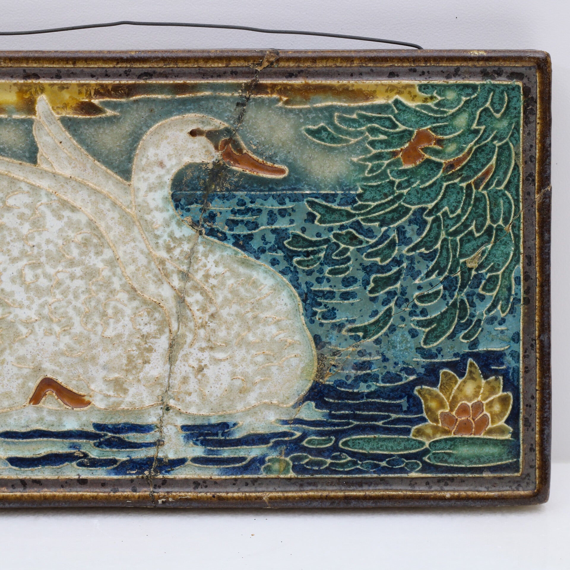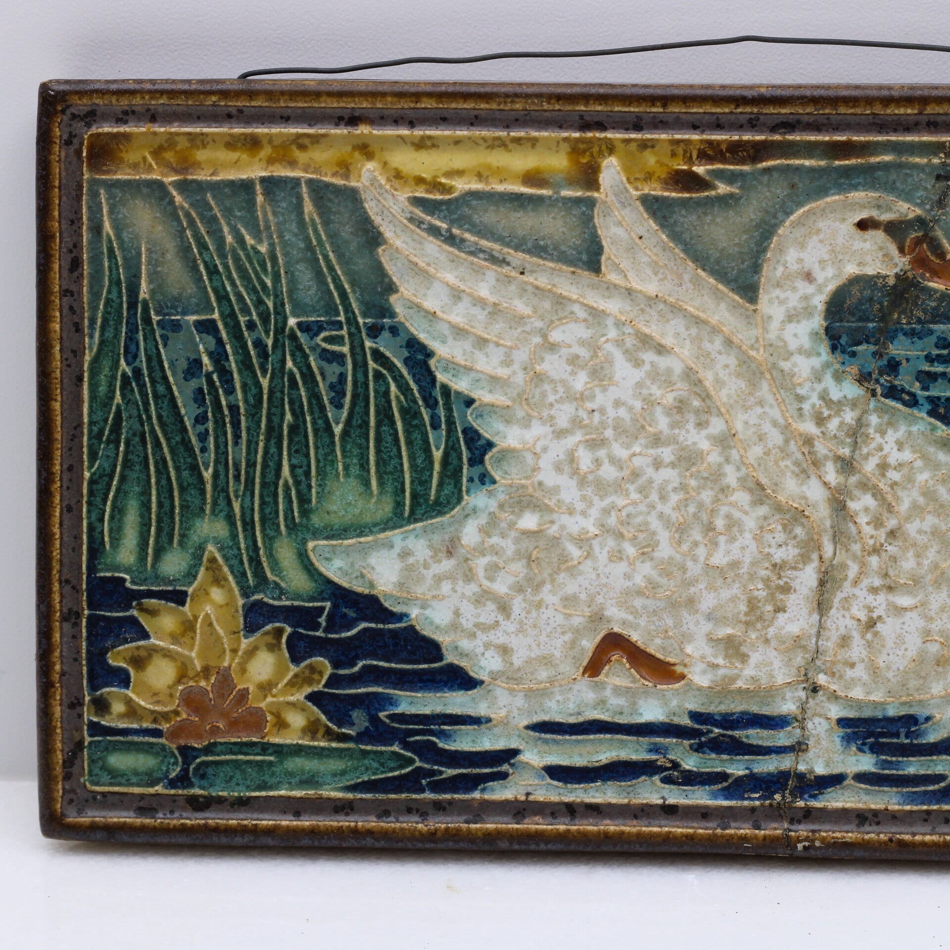 Dit is een zeldzame Royal Delft Cloisonné tegel met een zwaan, gemaakt bij aardewerkfabriek De Porceleyne Fles in Delft.