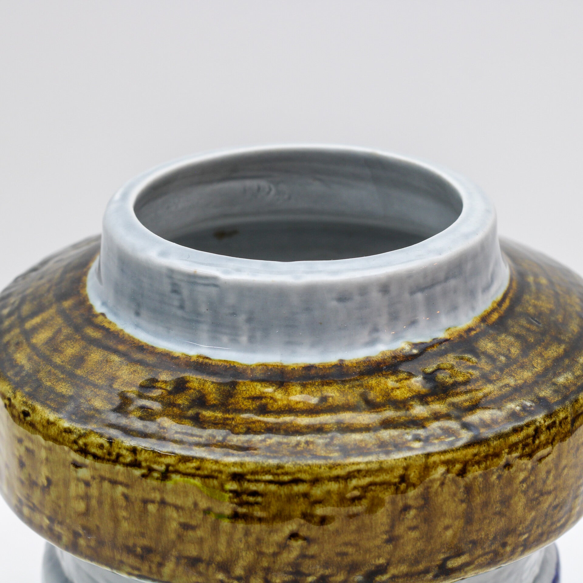 Deze handgeschilderde keramische vaas "Titus" is tussen 1963 en 1970 ontworpen door Olle Alberius voor Rörstrand.