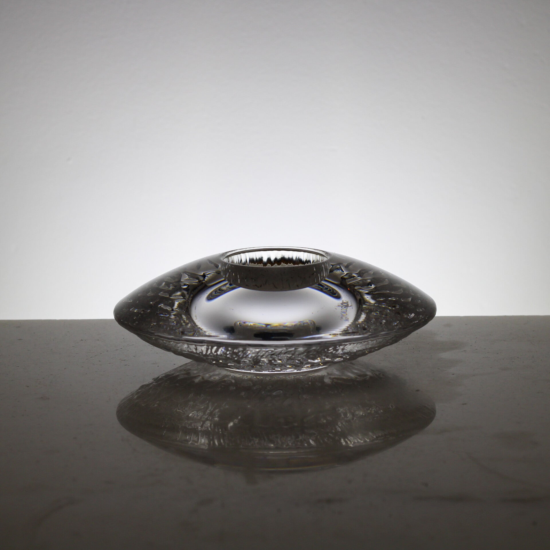 Het object is een Orrefors Discus waxinelichthouder, ontworpen voor het Wereldkampioenschap atletiek in 1995.