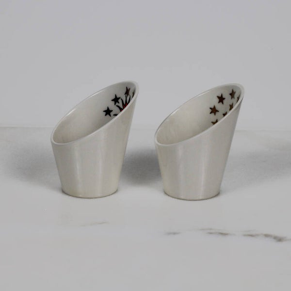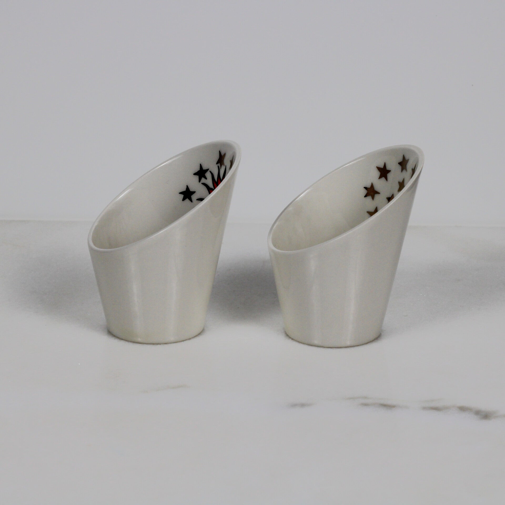 Exclusief in opdracht gemaakte lichtbekers, voorstellende een zon en een maan.
