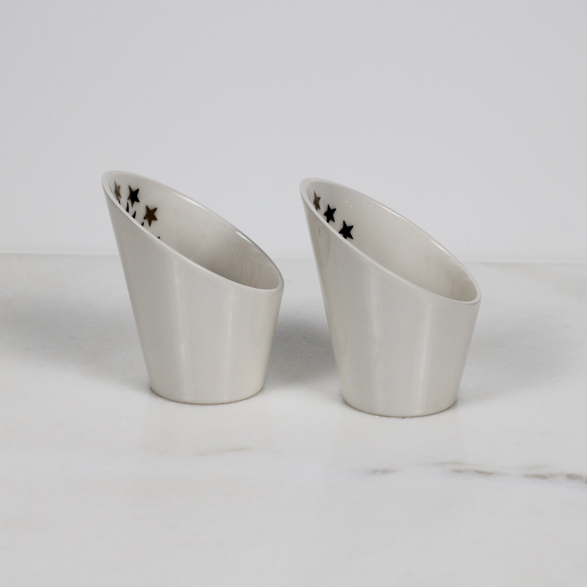 Plateelbakkerij Schoonhoven unieke set van 2 Lichtbekers (waxinelichthouders)
