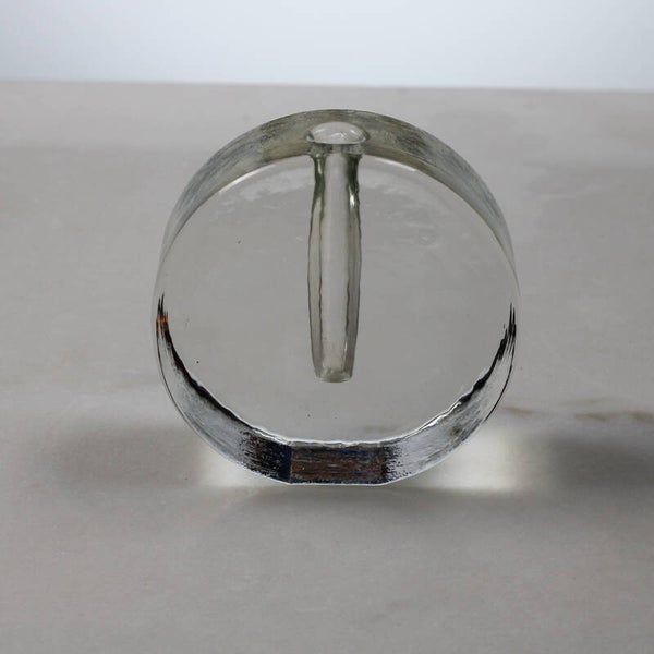 Het ontwerp wordt gekenmerkt door een zware, massieve glasblokvorm met een "ijstextuur" effect en een enkele opening voor een bloem.