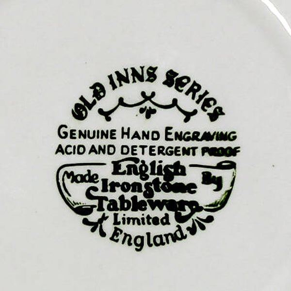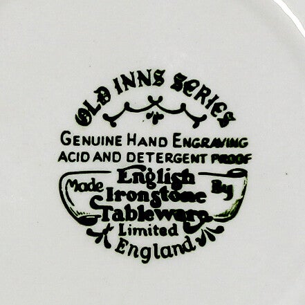 Een petit fourbordje uit de "Old Inns Series" van English Ironstone Tableware Ltd, vervaardigd in Engeland.