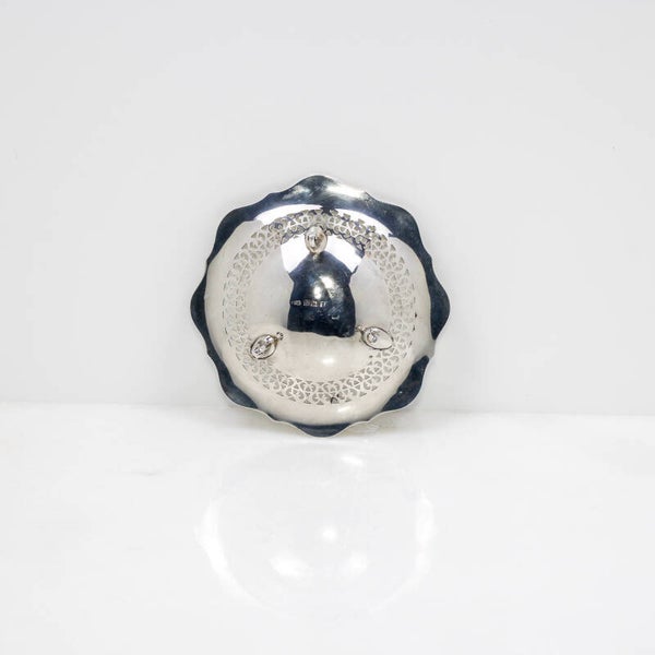 Verrijk uw collectie met dit schitterende Sterling zilveren bonbonschaaltje, een vroeg en verfijnd voorbeeld van de Art Deco periode.
