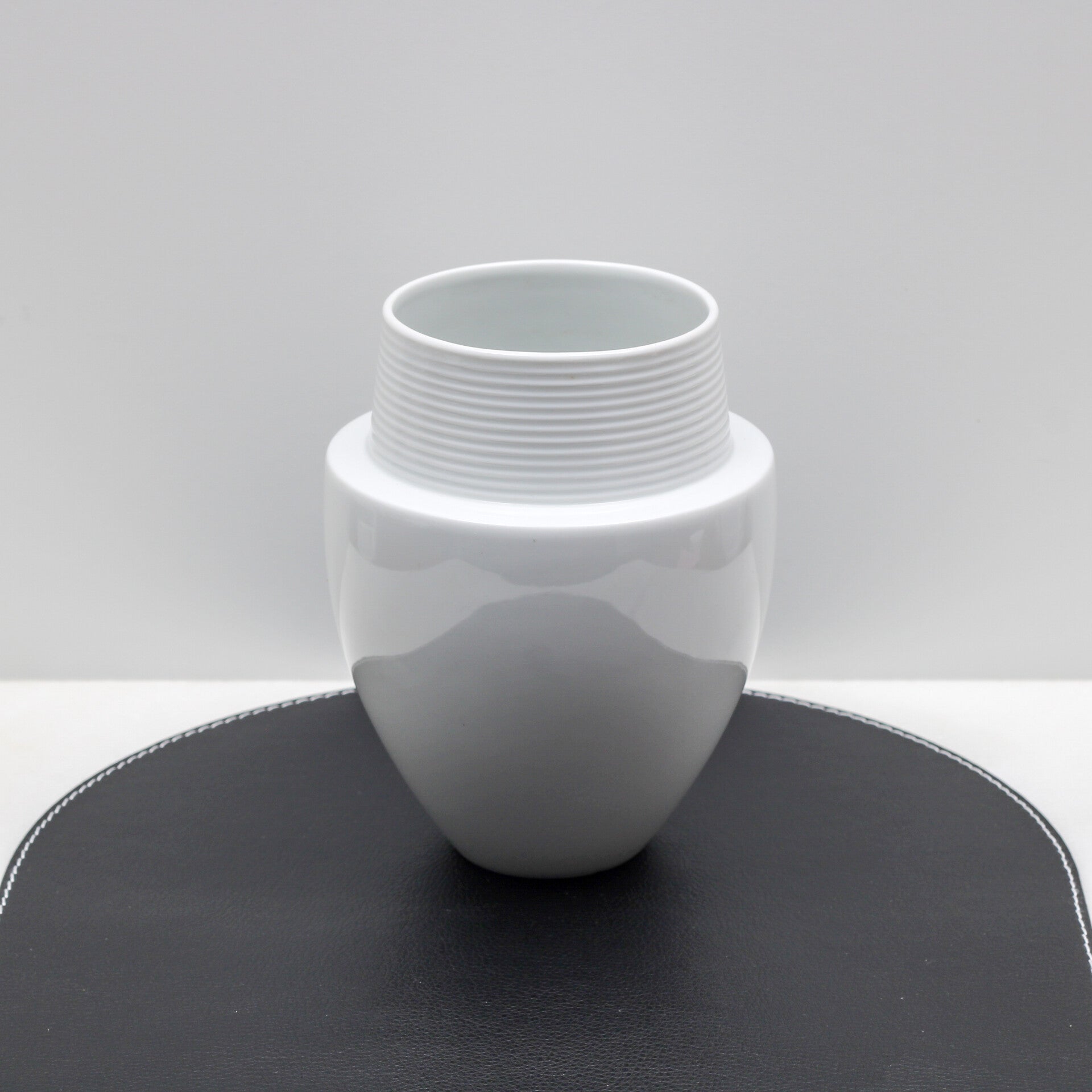 Geef je interieur een tijdloze, sculpturale upgrade met deze prachtige witte porseleinen vaas van het iconische Duitse merk Kahla.