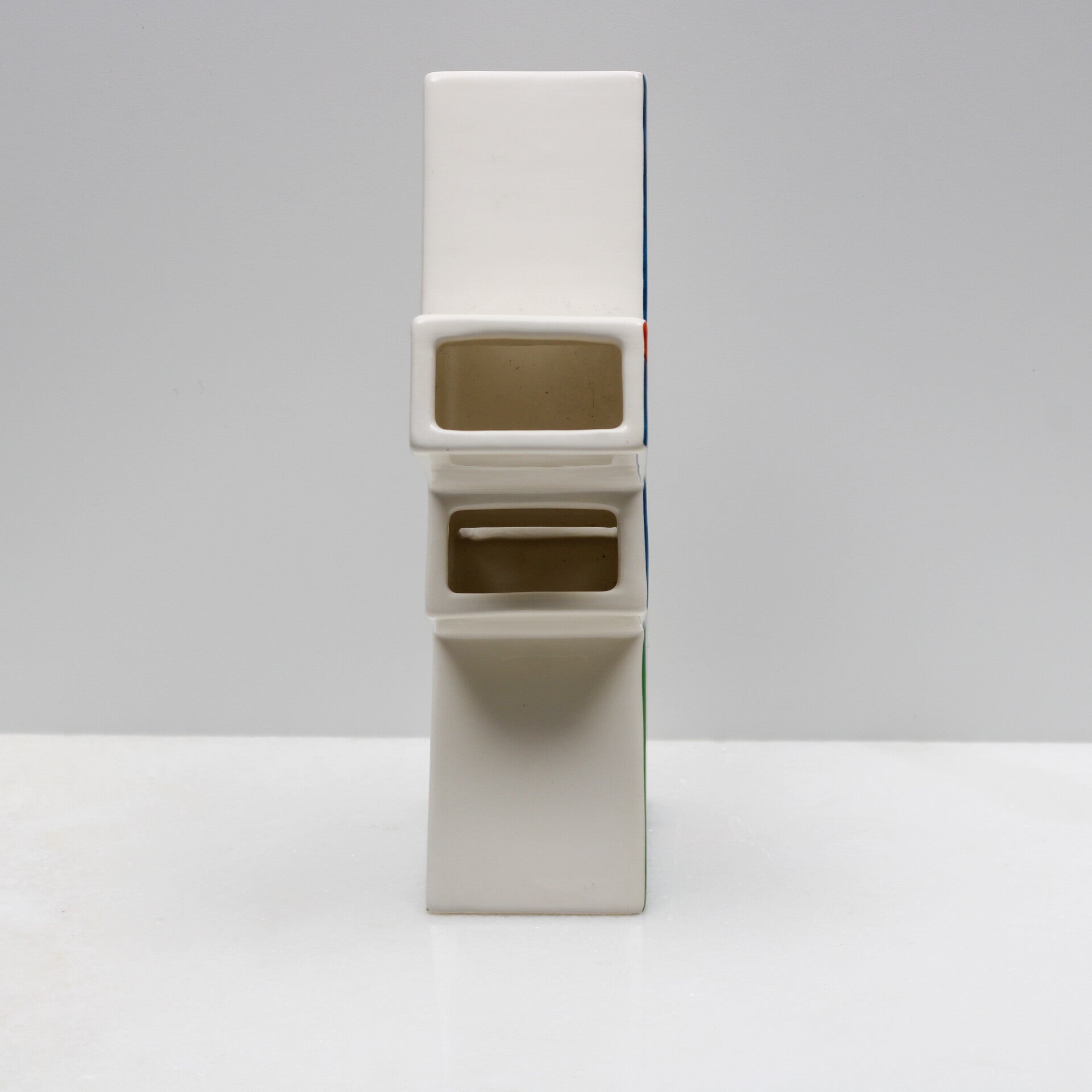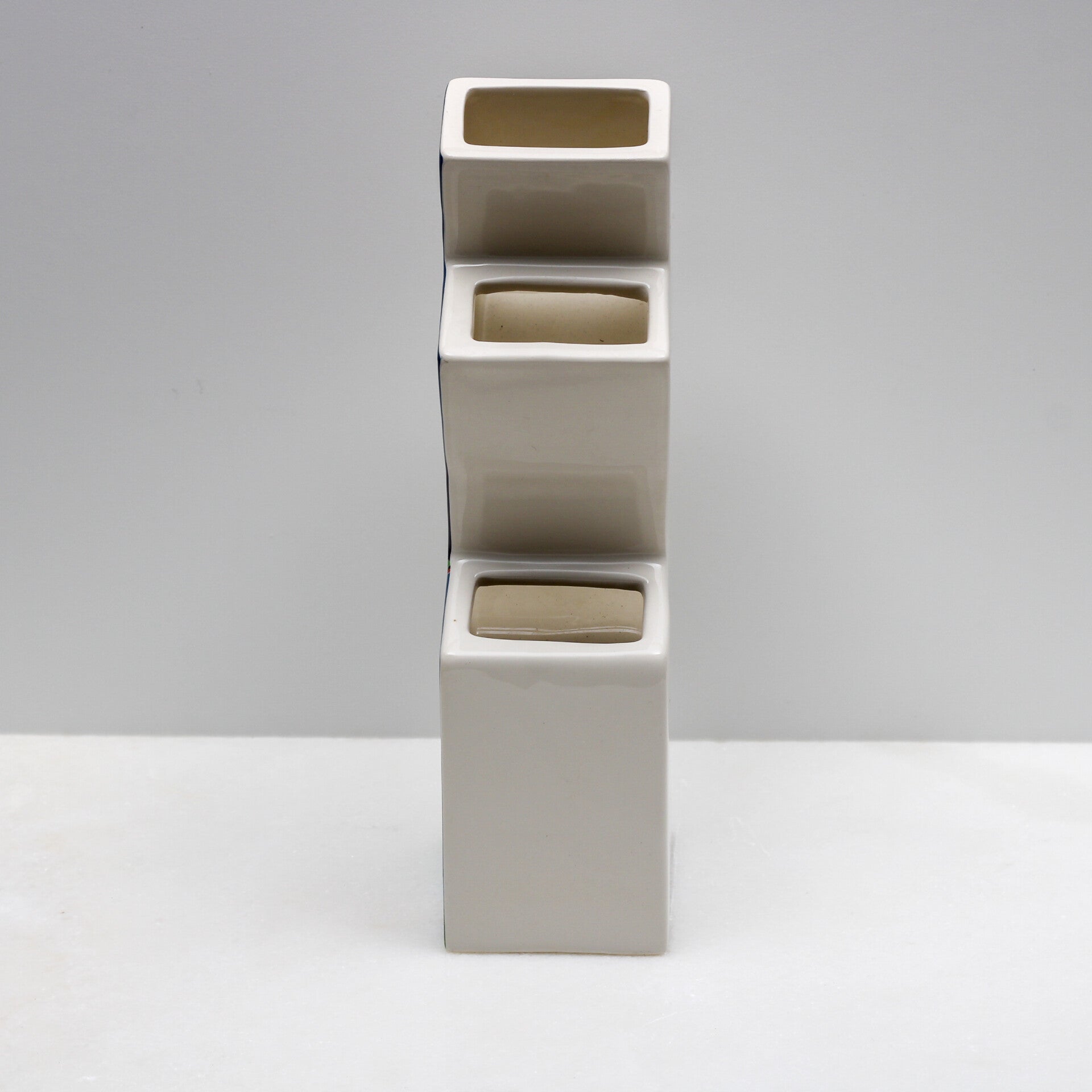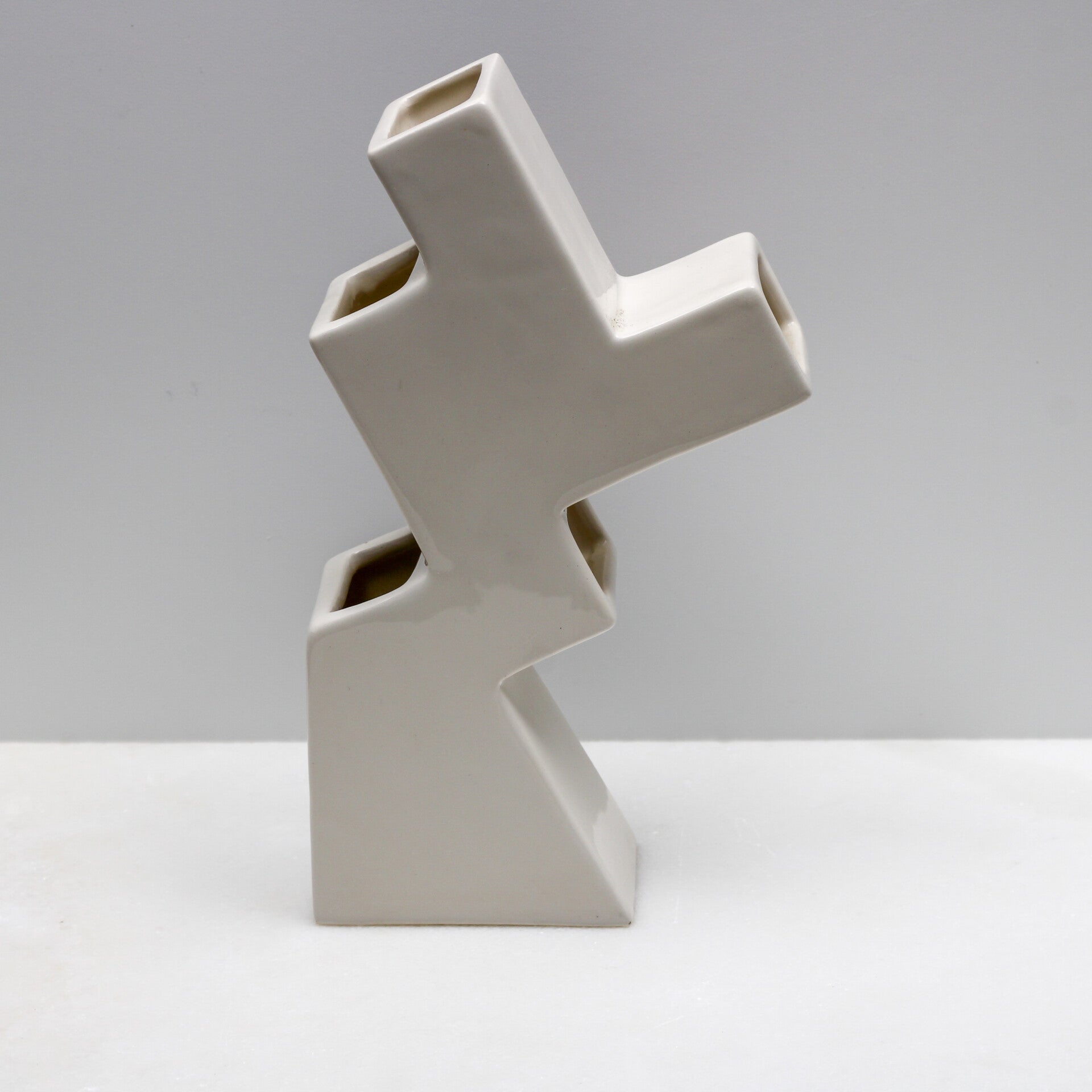 De vaas breekt met traditionele vormen door zijn gedurfde, getrapte Z-vorm. De vijf afzonderlijke openingen op verschillende hoogtes zijn perfect ontworpen om tulpen (of andere bloemen) prachtig tot hun recht te laten komen.