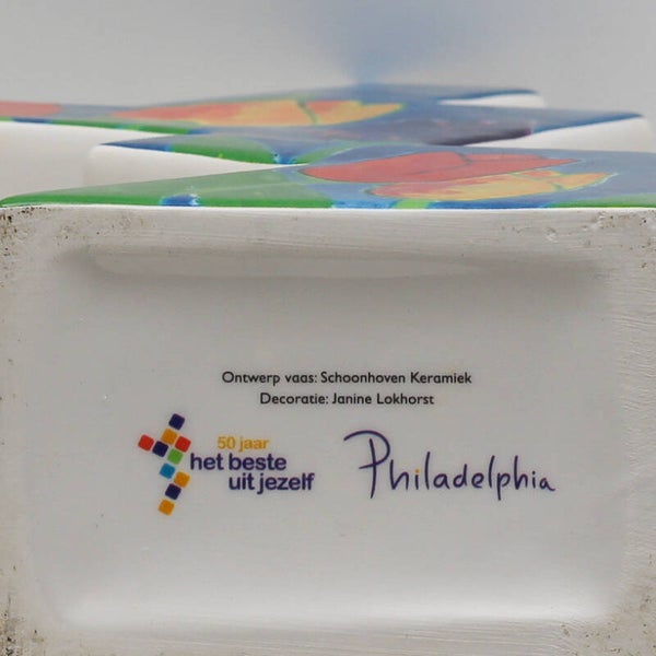 Deze vaas werd speciaal ontworpen ter gelegenheid van het 50-jarig bestaan van zorgorganisatie Philadelphia.