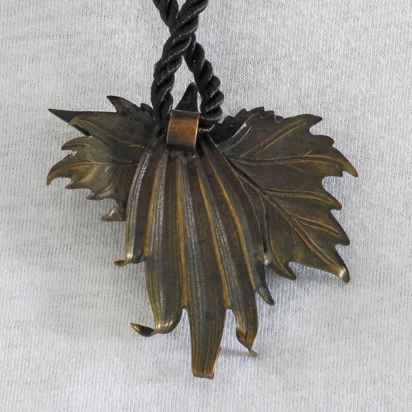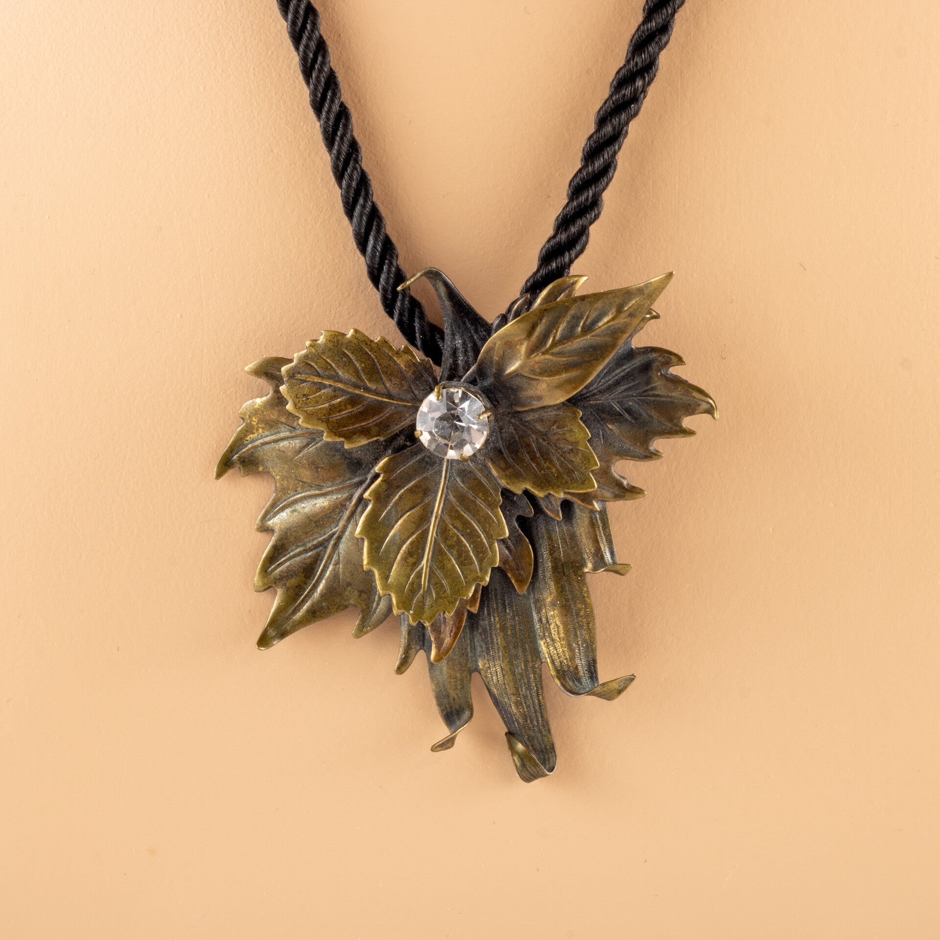 - Gelaagd Vakmanschap: De hanger bestaat uit meerdere lagen koperen bladeren, wat zorgt voor een prachtig diepte-effect en een tastbare textuur die kenmerkend is voor hoogwaardige vintage kostuumsieraden.