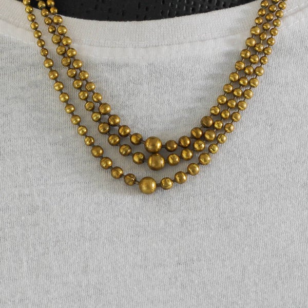 Vintage 3-Strands 'Golden Hour' Brass Bead Necklace – Jaren 50