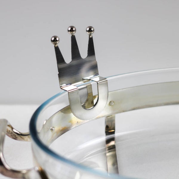 Het doordachte ontwerp in de vorm van een driepuntige kroon is bedoeld om op de rand van een schaal, terrine of bowl-kom te klemmen.