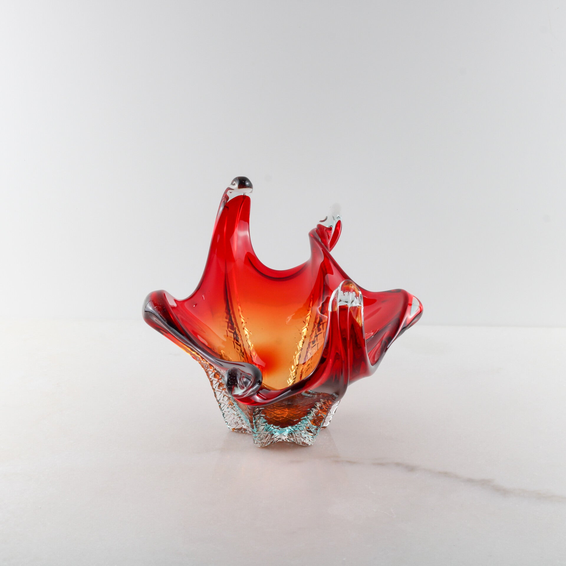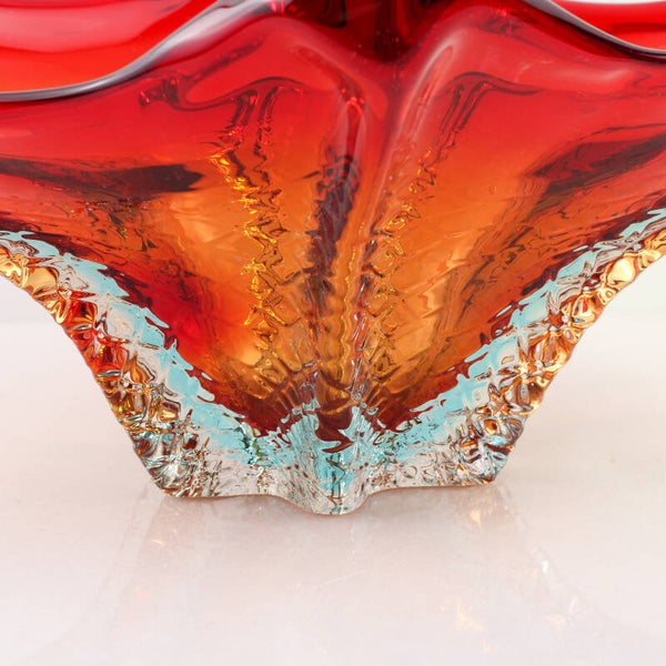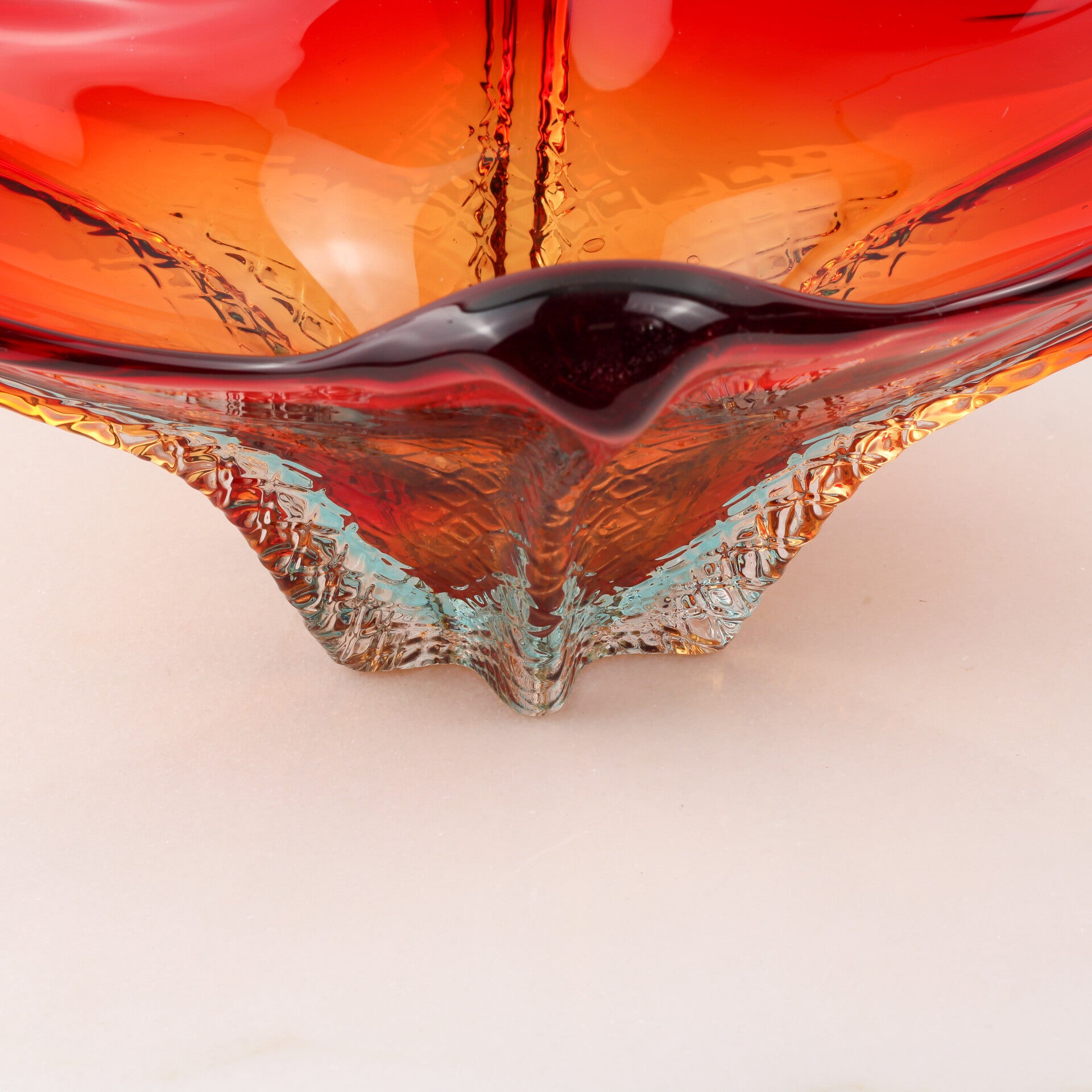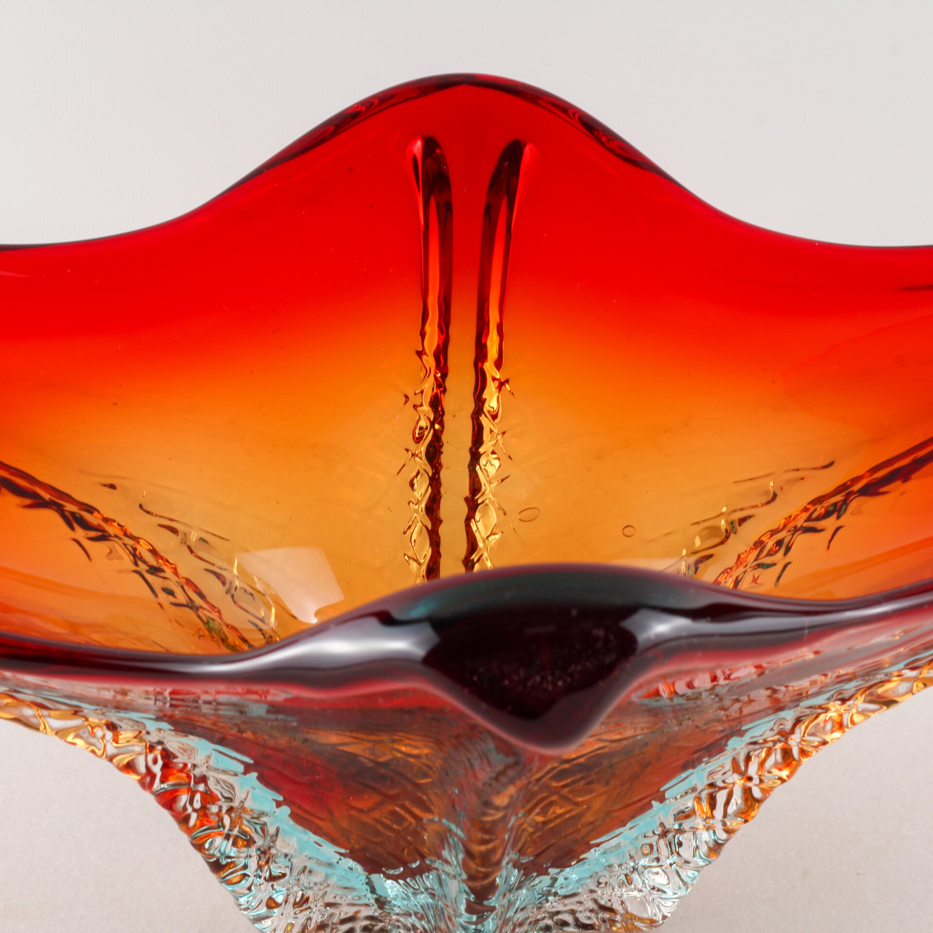 De schaal rust op een karakteristieke, zespuntige stervormige voet, een detail dat vaak wordt toegeschreven aan prestigieuze studio's zoals Fratelli Toso of Cenedese.