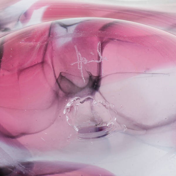 Het object belichaamt de iconische 'handkerchief' (zakdoek) stijl, waarbij vloeibaar glas door rotatie en zwaartekracht is gestold in een organisch, golvend silhouet.