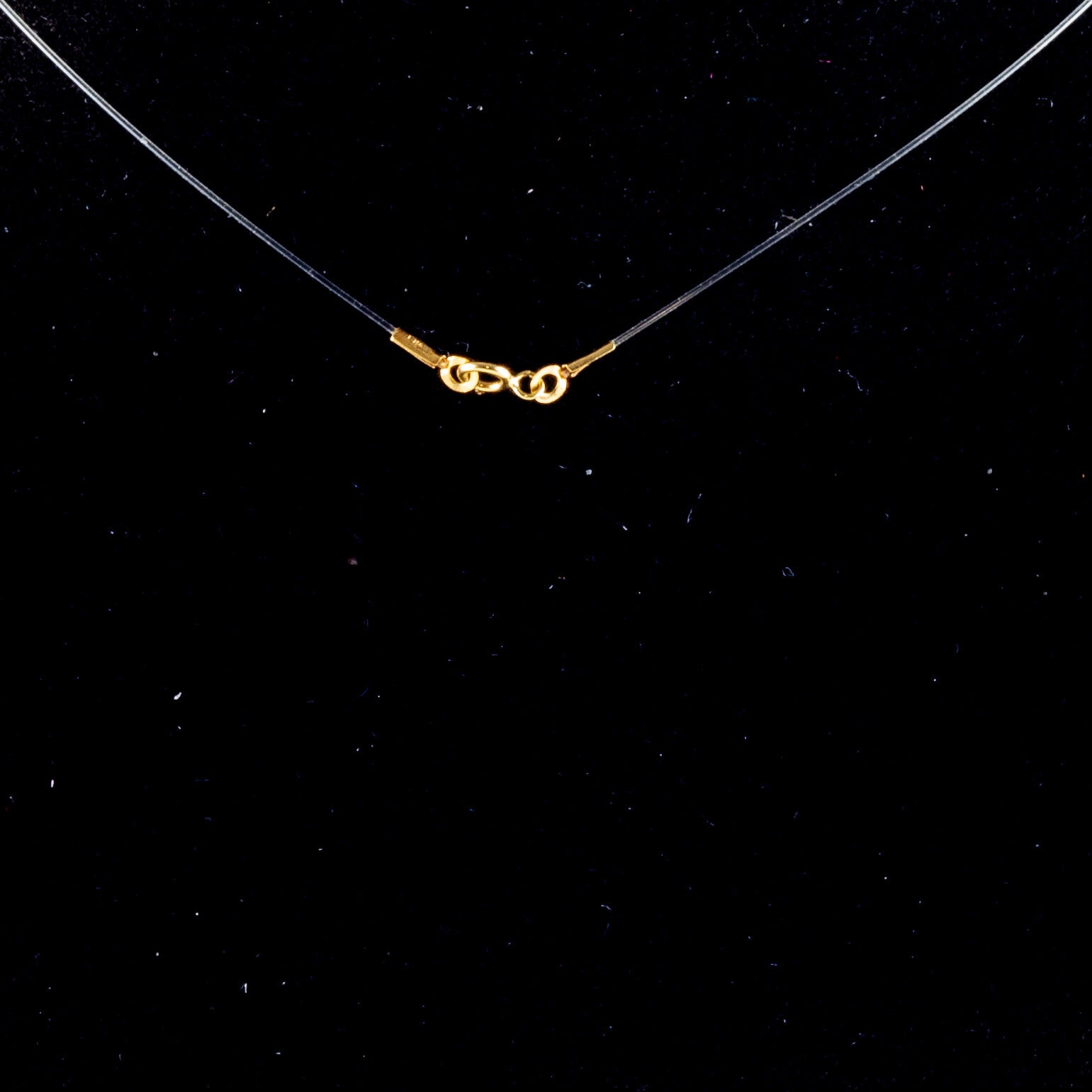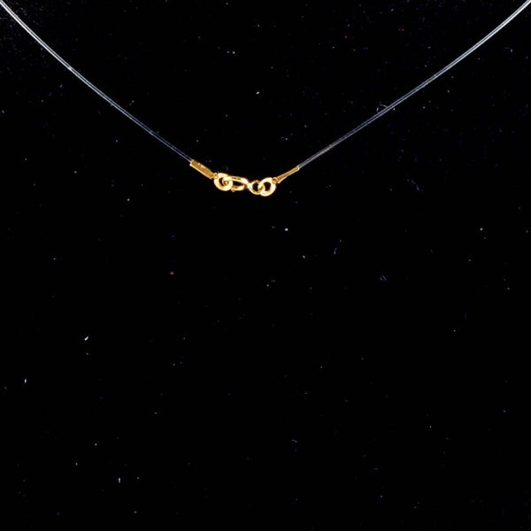 Het ontwerp wordt gepresenteerd aan een ragfijne, transparante nylondraad, uitgevoerd met de originele gouden sluiting.