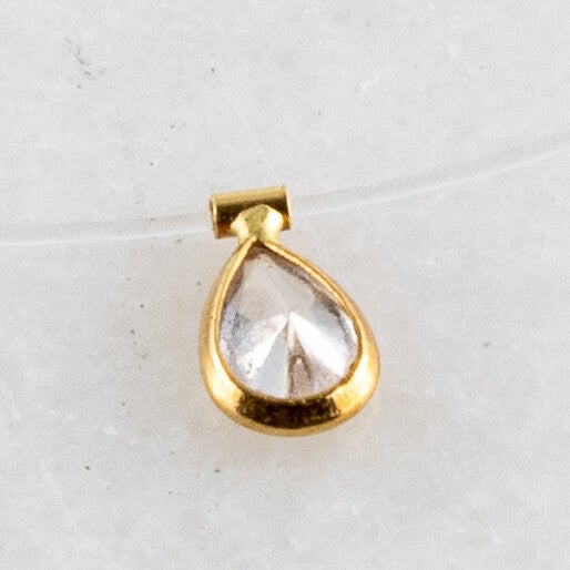 Centraal staat een natuurlijke, peergeslepen diamant van circa 0,22 - 0,25 karaat (5 x 3 mm).