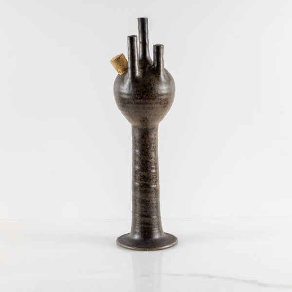 Met een indrukwekkende hoogte van 33,5 cm overstijgt dit object zijn oorspronkelijke functie; het manifesteert zich als een verticaal sculptuur.
