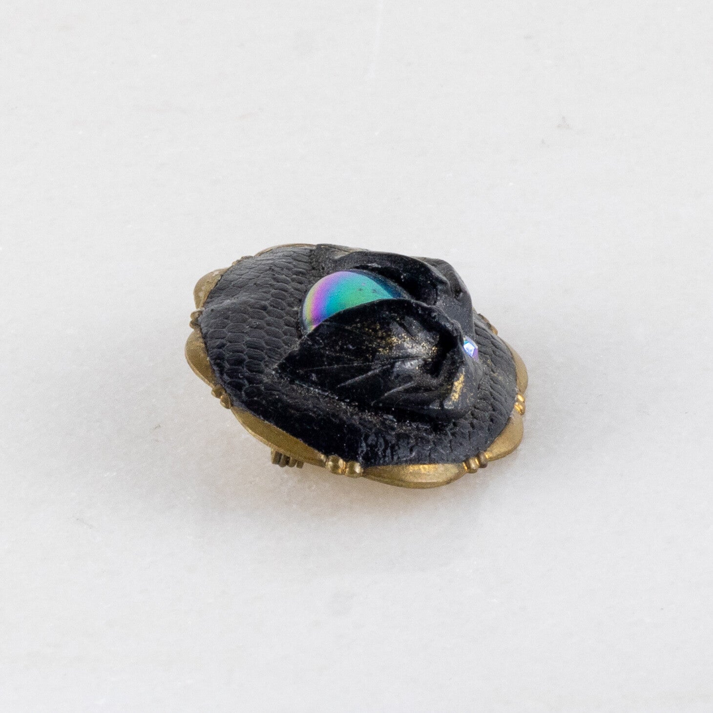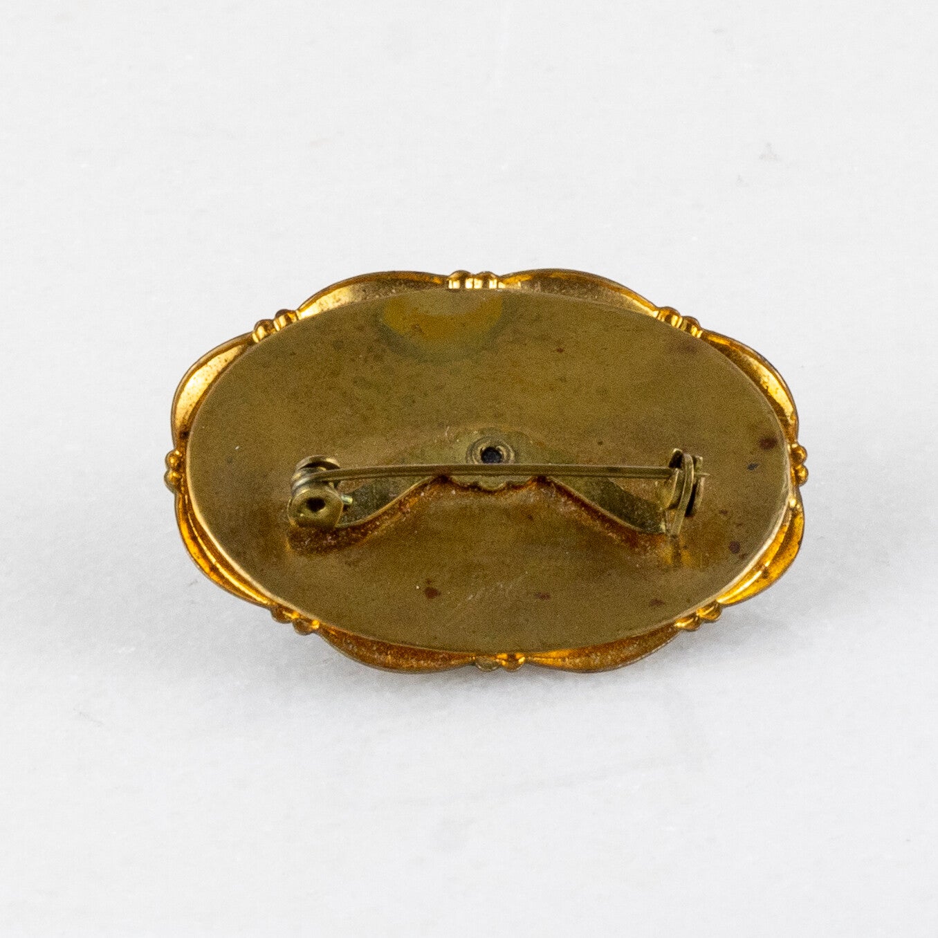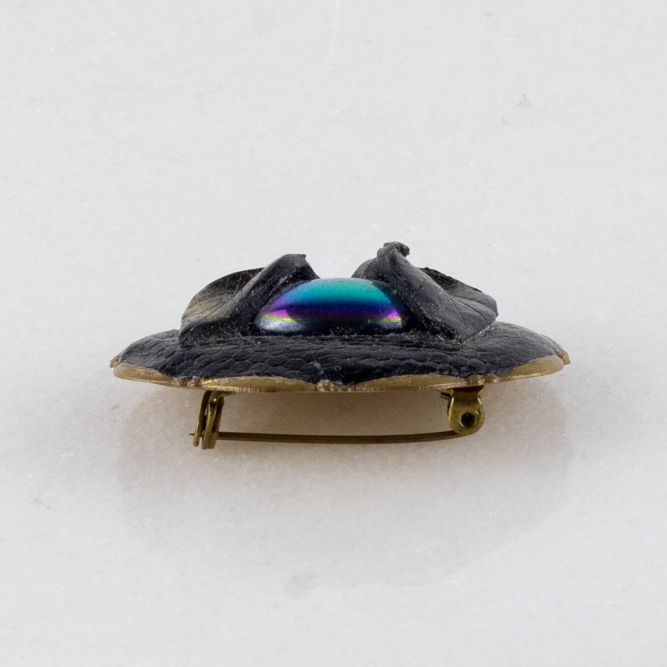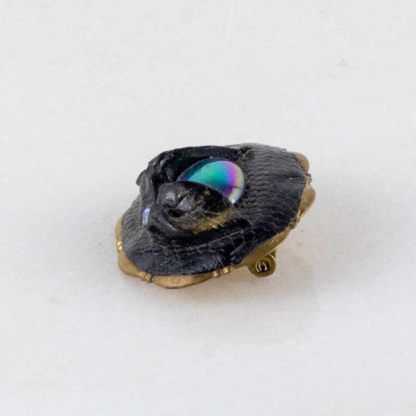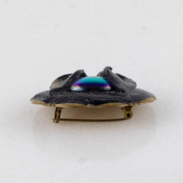 Deze ovale broche is een samenspel van contrastrijke texturen en geraffineerde details, perfect voor de verzamelaar van modernistische mode-objecten.