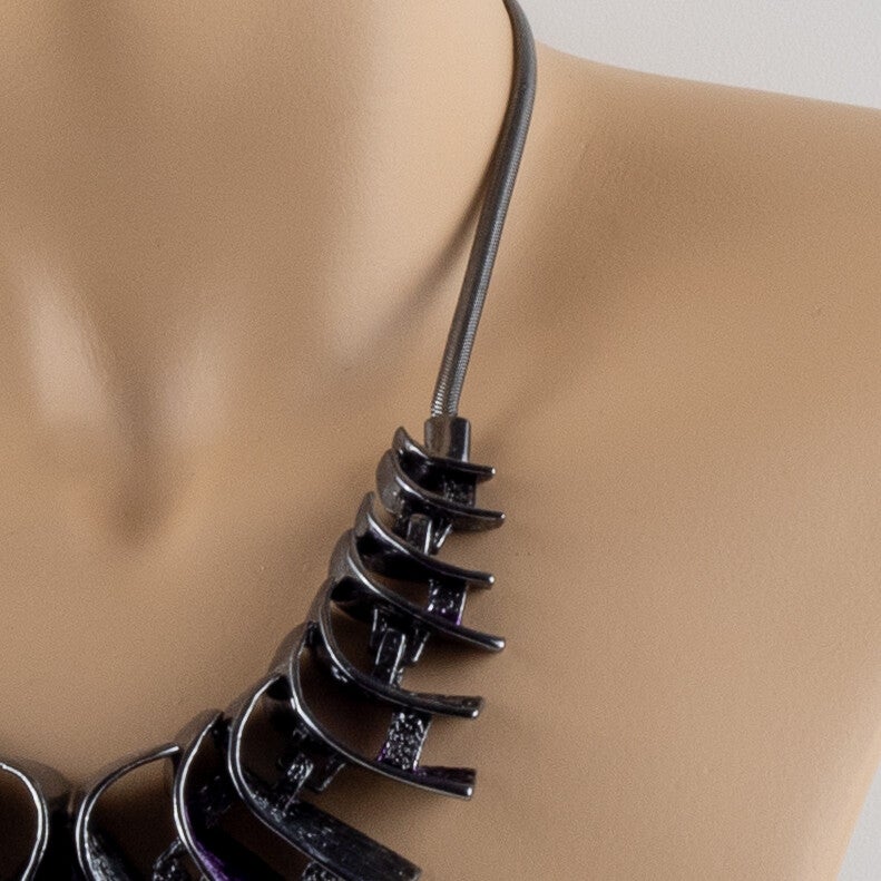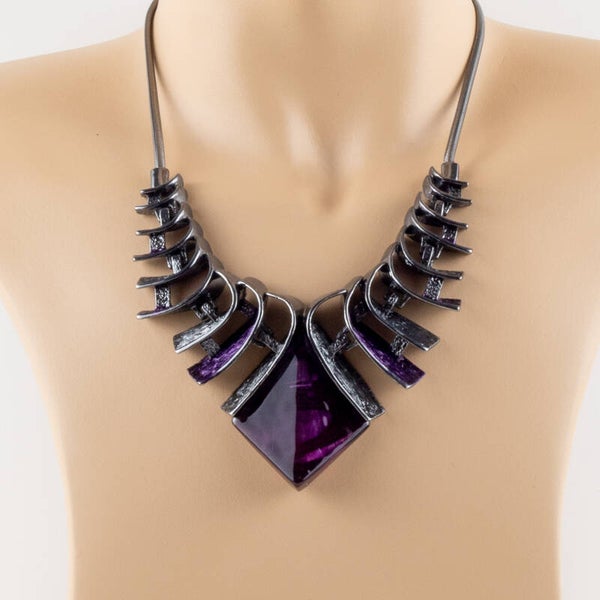 Architecturale Kracht: Gunmetal Statement Collier met Amethist-Glow