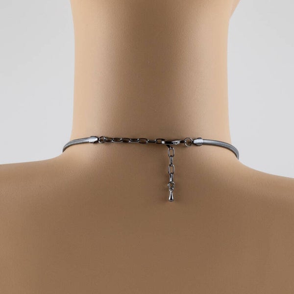 Met een verstelbare lengte van 41 tot 47 cm valt het sieraad als een sculpturale kraag, wat het een onmiskenbare 'presence' geeft.